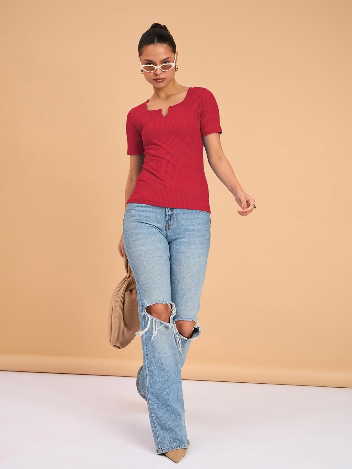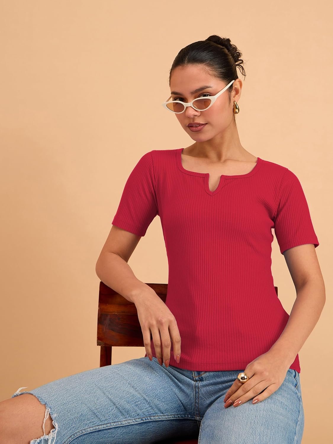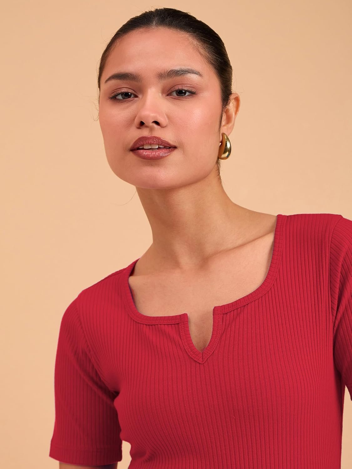 barcino Beige Ribbed V-Neck